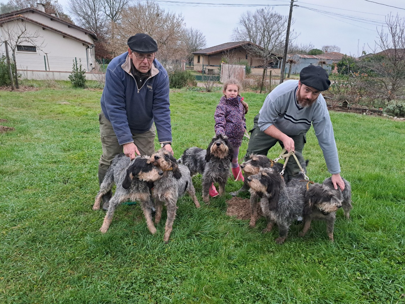 La meute Fin de saison 2008-2009 6 chiens posant pour le début de saison 2009-2010 Meute, Nationale d'élevage 2010 Nationale d'Elevage 2011 Meilleure Meute en Griffon Bleu, Nationale d'Elevage 2013 Début de saison 2013-2014 Noël 2025. Photo pour la revue "Chiens Courants"